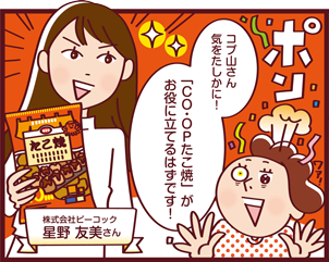 コープ大好きコプ山さんの教えてCO・OP商品 コープ商品大好き、コプ山協子東に特売商品があれば購入し、西に新商品があれば試すコープの求道者。日がな一日コープ商品のことばかり考える、そういうものになりたいコプ山さんです。 漫画・イラスト:熊野友紀子 第18話「CO・OPたこ焼」 2025.10.01 第17話「CO・OPミニワッフルドッグ(チーズ)」 2025.09.01 第16話「CO・OPアーモンドリーフ」 2025.08.01 第15話「CO・OP塩さけの切身」 2025.07.01 第14話「CO・OPミックスキャロット」 2025.06.02 第13話「CO・OP食器も洗える水回りのおそうじ用シート」 2025.05.01 第12話「CO・OPふっくらにしんの甘辛煮」 2025.04.01 第11話「CO・OP応援食ココアクッキー」 2025.03.03 第10話「CO・OPミックスチーズ」 2025.02.03 第9話「CO・OPやわらか豚角煮トンポーロー」 2025.01.07 第8話「CO・OP讃岐 えび天鍋焼うどん」 2024.12.02 第7話「CO・OPファミリーチョコレート」 2024.11.01 第6話「CO・OPふっくら仕上げたあら挽き肉のハンバーグ」 2024.10.01 第5話「CO・OP中華丼の具」 2024.09.02 第4話「CO・OPオートミール」 2024.08.01 第3話「CO・OP国産温州みかんを味わうゼリー」 2024.07.01 第2話「CO・OPたまごスープ」 2024.06.01 第1話「CO・OPぷちささみフライ(チーズ入り)210g」 2024.06.01