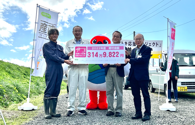 The Co-opdeli Consumers' Co-operative Union and its member co-ops have donated 3,149,822 yen raised through the Sado Crested Ibis Supporting Rice Project, an activity promoted by Sado City in Niigata Prefecture to promote environmentally friendly agriculture (biodiversity farming) and to support the return of the crested ibis to the wild. The total amount of donations since the project's inception is 32,741,592 yen over 12 years.