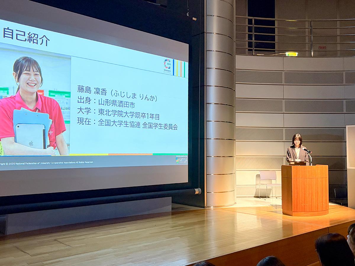 いわて生協、いばらきコープ、コープぐんま、パルシステム東京、コープみらい、ユーコープ、コープみえ、おかやまコープ、高知県生協連、生協コープかごしま、全国大学生協連、コープぎふ(オンライン)の12生協から今年度の取り組みについてリレー形式で報告がありました。
