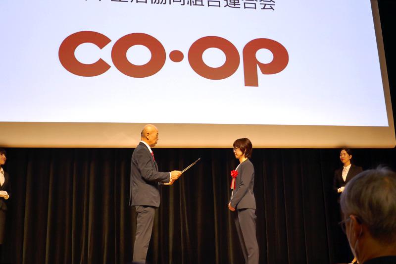 日本生協連からは、「企業総合賞」の表彰に開発管理部ブランド管理グループの谷本マネジャーが登壇し、「専門家賞」2品の表彰には、制作実務に携わった担当が登壇して表彰状を受領しました。
